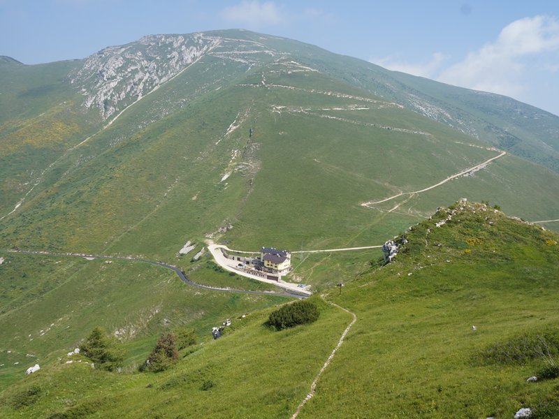 Arrival to Altissimo "Damiano Chiesa" mountain hut (2,059 m), Bocca Paltrane (1,831 m), Campo mountain pasture (1,636 m).