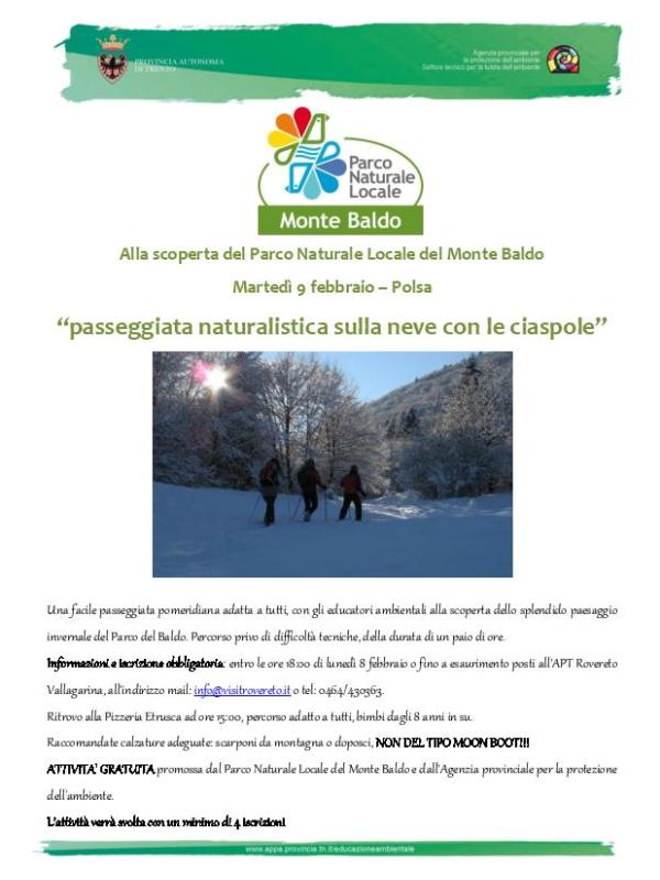 Passeggiata naturalistica sulla neve con le ciaspole, alla scoperta del Parco Naturale Locale del Monte Baldo